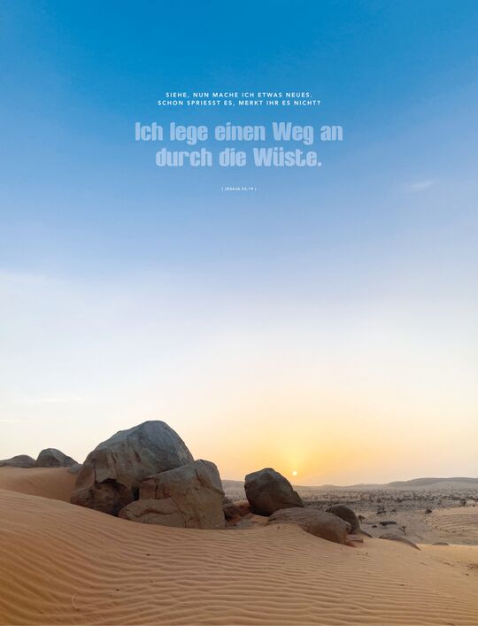 Siehe, nun mache ich etwas Neues. Schon sprießt es, merkt ihr es nicht? Ich lege einen Weg an durch die Wüste.