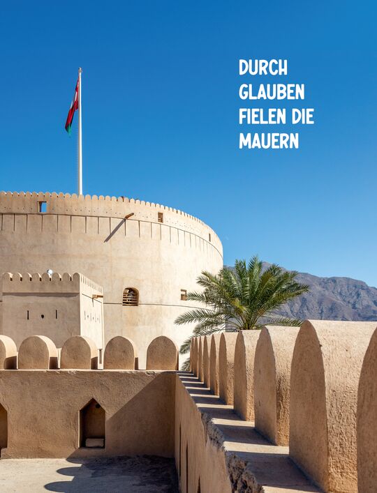 Deshalb bleiben wir hier. Mit einem Team aus insgesamt 3 Familien leben wir unter den Omanis. Wir durchziehen die Straßen mit Gebeten, so wie die Israeliten mit ihren Posaunen um die Mauern Jerichos gezogen sind. Gleichzeitig nutzen wir die manchmal nur zögerlich geöffneten Tore, um sowohl in Gesprächen als auch in unserem Umgang mit ihnen Stein um Stein Mauern aus Vorurteilen und Verwirrung abzubauen. Gott kann im großen Stil die Mauern zum Einstürzen bringen, er kann aber auch kleine Risse im harten Gemäuer nutzen, um seine Liebe zu den Menschen durchdringen zu lassen. Deshalb wollen wir treu sein in den Beziehungen, die er uns ermöglicht und auf sein Wirken unter den Omanis vertrauen.